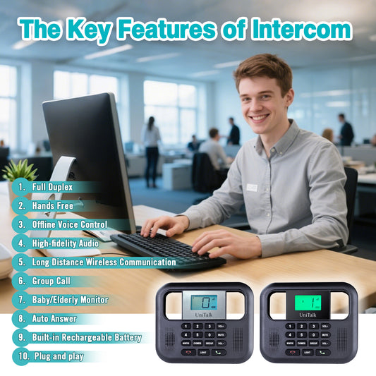 UniTalk Wireless Intercoms for Home & Office, Two-Way Real-time Full-Duplex Voice System with Offline Voice Control & Monitor Function, Clear Sound, Up to 800 Meters (1/2 Mile) Range (UT-001-1F2P)